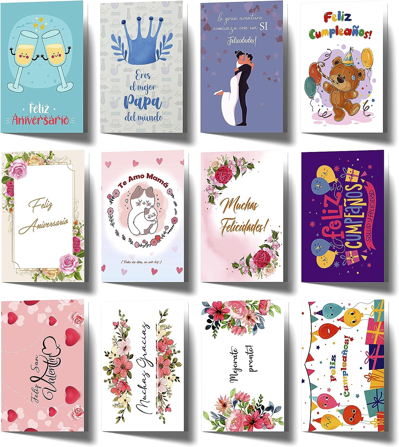 Cheerset Tarjetas postales originales – felicitaciones bonitas de cumpleaños, dia de la madre (padre), boda, aniversario 12 Unidades